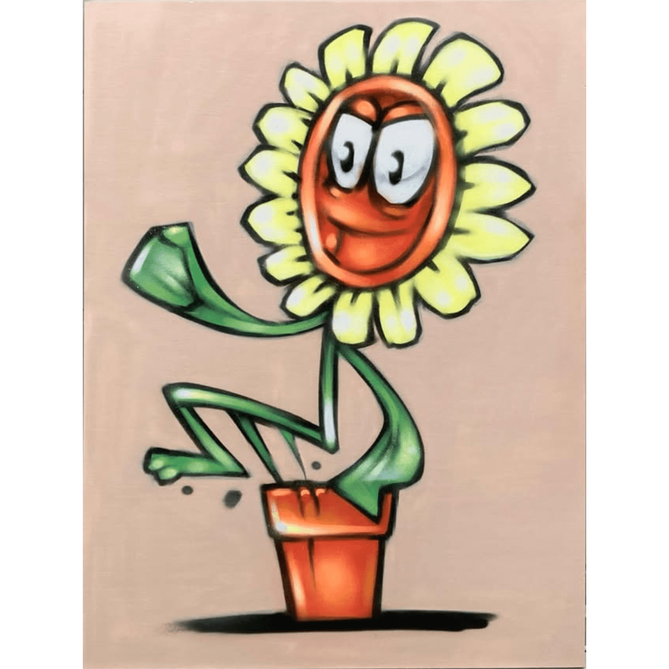 Sepr’s work is characterised by bold, whimsical characters and vibrant colours, blending graffiti energy with playful, surreal imagery. His compositions often combine fluid line work with graphic clarity, creating murals and pieces that feel both humorous and visually striking, rooted in street art traditions but uniquely expressive.